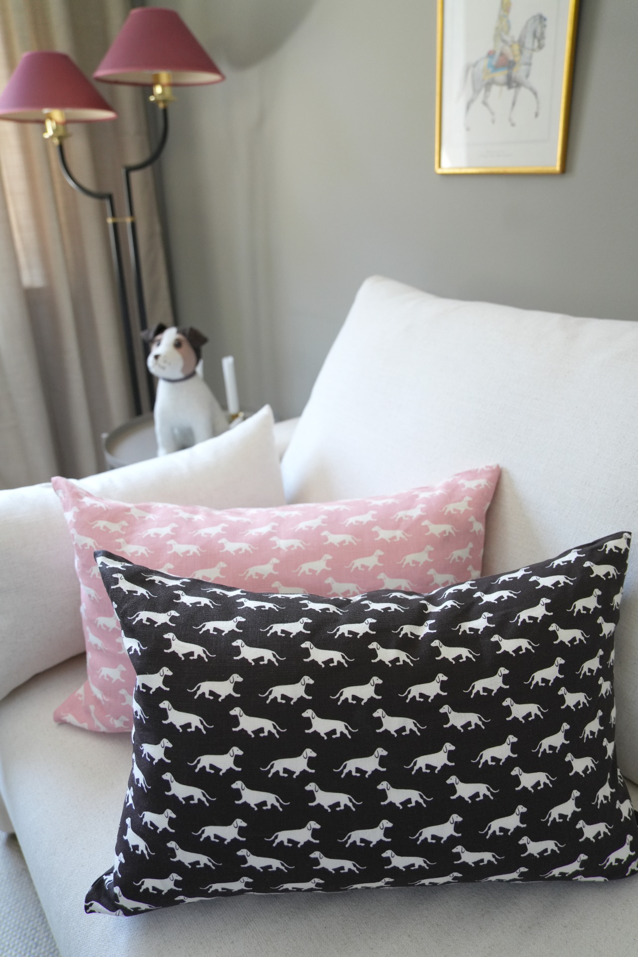 Dachshund Walkie är ett mönster inspirerat av vår älskade tax. Motivet är handtryckt på linne och kommer i två storlekar och tre mjuka, harmoniska kulörer. Kuddfodralen tillför ett elegant och sobert uttryck som skapar charm och karaktär i hemmet.